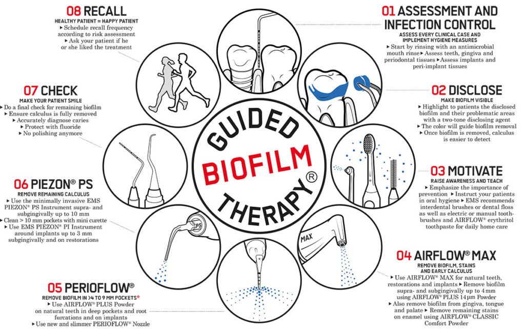At Lynn Dental Care, we can use the EMS AIRFLOW device to deliver comfortable Guided Biofilm Therapy to thoroughly remove biofilm from the teeth and gums. Biofilm is the layer of plaque that can form across the teeth and gums; left untreated, it can contribute to inflammation, gingivitis and the development of gum disease.